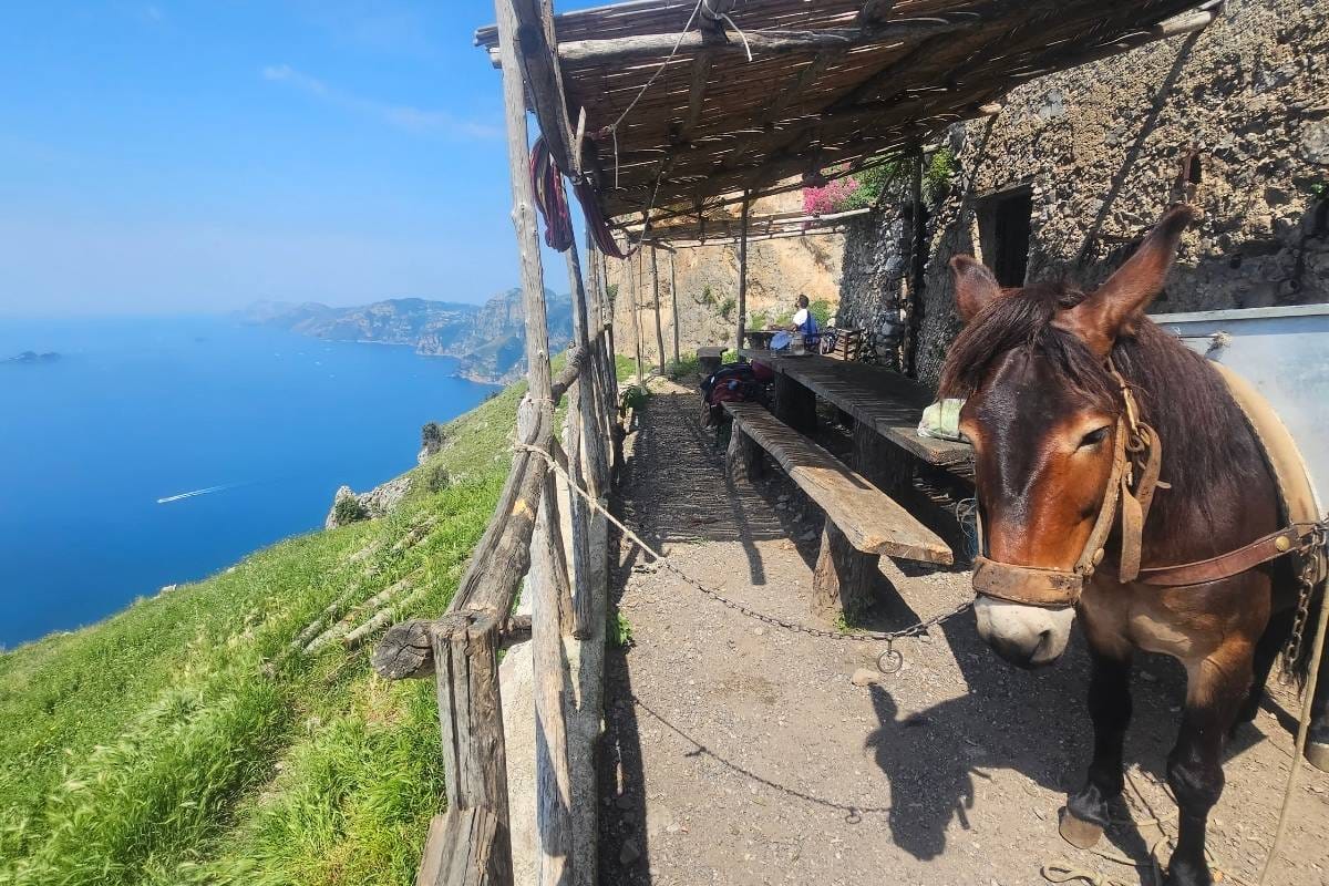 The well-maintained trail offers panoramic views of the Mediterranean Sea and the colourful towns of Positano and Praiano below. You’ll walk past citrus groves, fragrant rosemary bushes, and occasional inclines as you traverse the cliffside path.