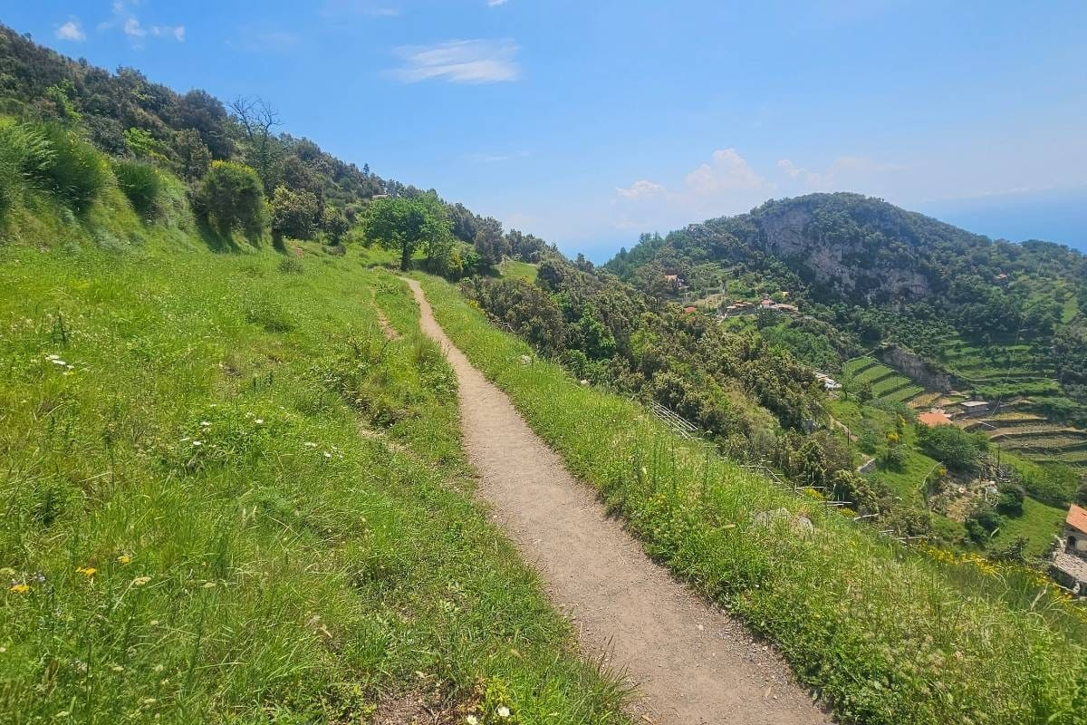 The Path of the Gods (Sentiero degli Dei) walk is moderately challenging and quite long. The hike is along the Amalfi Coast in Italy. I did this walk in May and the weather was perfect, not too hot.