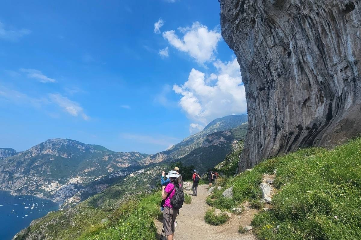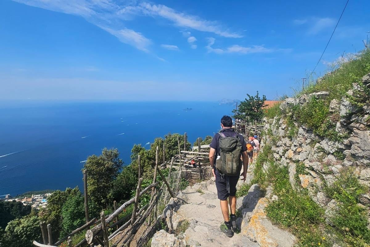 The well-maintained trail offers panoramic views of the Mediterranean Sea and the colourful towns of Positano and Praiano below. Youāll walk past citrus groves, fragrant rosemary bushes, and occasional inclines as you traverse the cliffside path.Ā