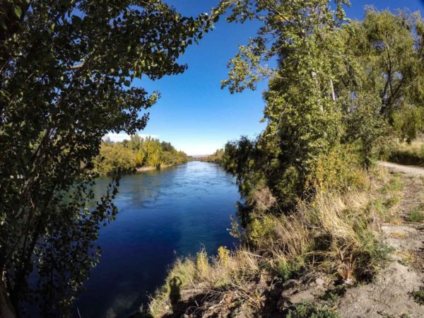 It follows alongside the mighty Clutha Mata-au River as it swiftly meanders through the valley.