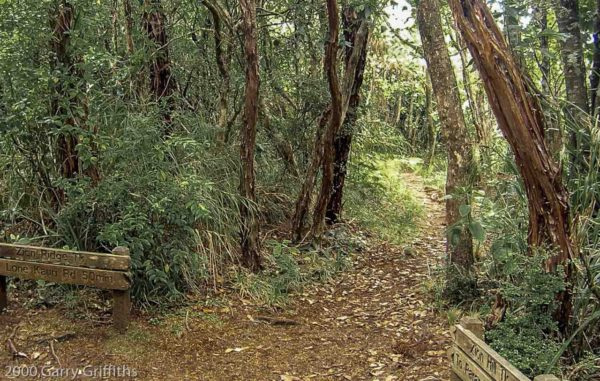 Mt Zion 50 min, 236 mt climb. Mt Zion turn off nothing to see, good sign post.  Turn right onto the Hill track.  From here on it is downhill all the way, good views the wetlands and the beach, you can just make out the old tram track running up through the wet lands, so keep looking to your right.  It can be a little slippery if wet, take care.
