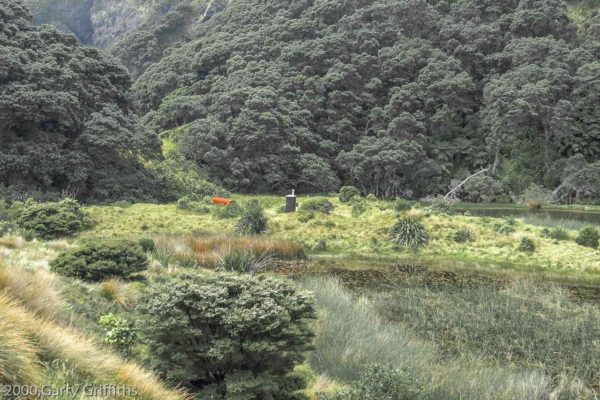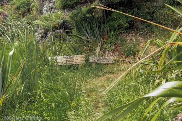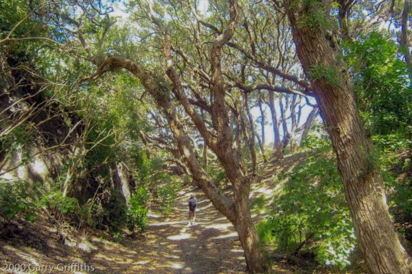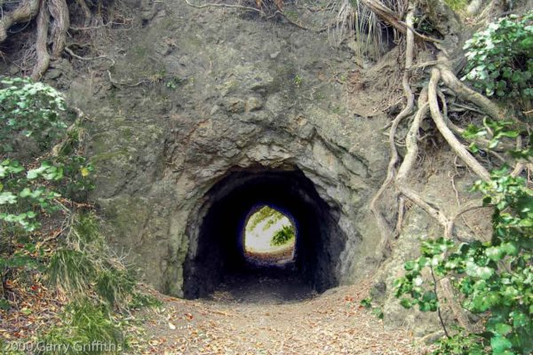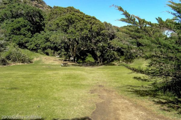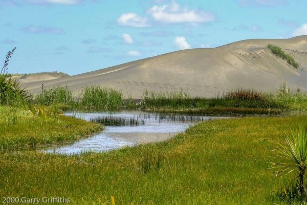 To Karekare beach.  Standing on top of the sand hill, look nor, nor, west . 900ms towards the big clump of trees that is where the tunnel is located.  And a good camp spot. Walk between the swamp and the sand hills.  More so to the sand hills you should meet up with the goat track leading to the tunnel.  If not, head for the trees you can’t go wrong, you will only have to walk over the sand hills.  Nothing wrong with that. Keeping the cliff face on your right shoulder at all times.  Keep an eye out for rabbits and pheasant there are a few around.