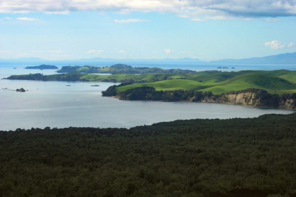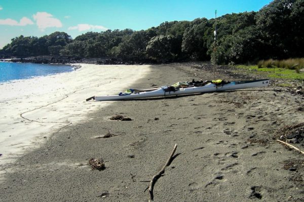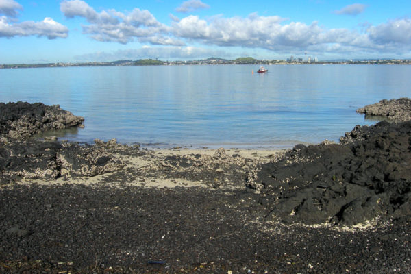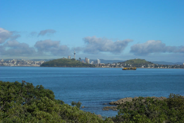 From the bay looking east, you can just see the north shore town of Takapuna 5 km away. On a fine day, the brave people in their sea kayaks will paddle over to Mackenzie Bay for a quick lunch then paddle back for a coffee at one of the many cafes on Takapuna beach.