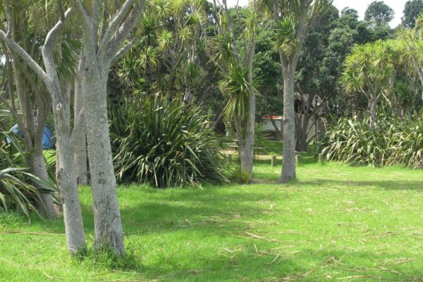 At the top of the point you can sit down and enjoy the view of Te Haruhi Bay. This is one of many fantastic spots to stop for lunch. If it is too early for lunch, wait till you arrive at the sonar building, 35 mins away.