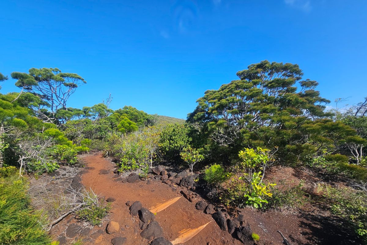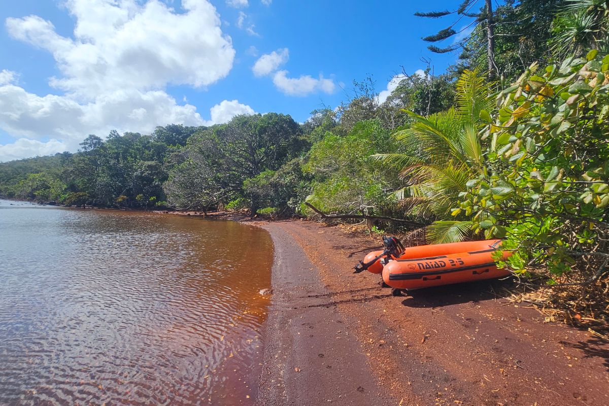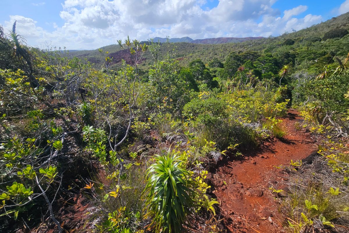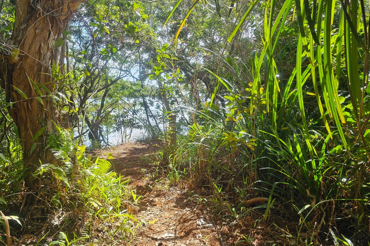 We started this walk by arriving by boat and tying the dinghy up at the little red sand beach. The sand is so fine it gets in everything!