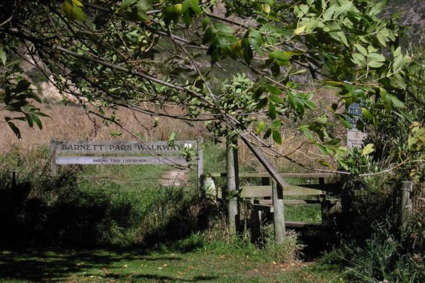 From Barnett Park, walk across the sports field towards the head of the valley. A small bridge crosses a creek, and the track starts to climb up the eastern flank.