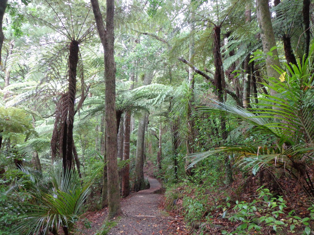 As I stated in this post “The native bush includes nikau palms, young kauri trees and ponga tree ferns.” I am planning to go back to document this walk at some stage this year. Having done numerous walks since February, I am sorry I do not remember exactly where the kauri trees are.