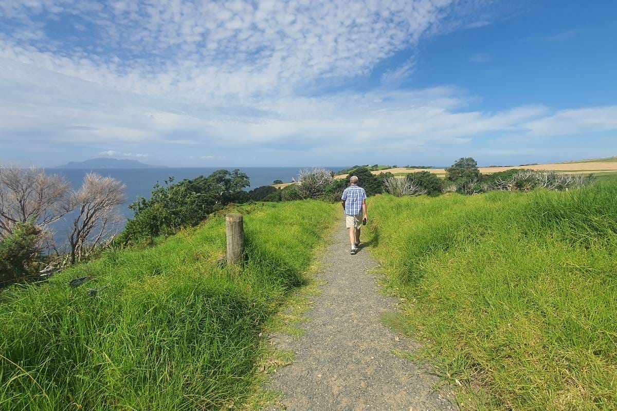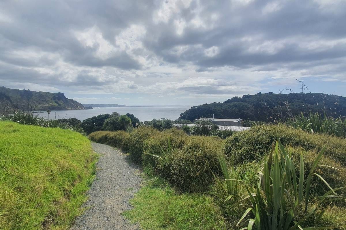 Here, I am treated to stunning views out to the Hauraki Gulf, Little Barrier Island, and the Hen and Chicken Islands.