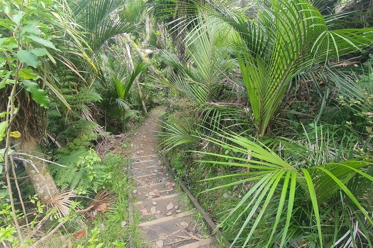 The track starts at the main Goat Island car park and leads down to the Auckland University Marine Laboratory via a signposted path. From there, a gravel track offers scenic views from a hill-top overlooking Goat Island, Pakiri, and Little Barrier Island.