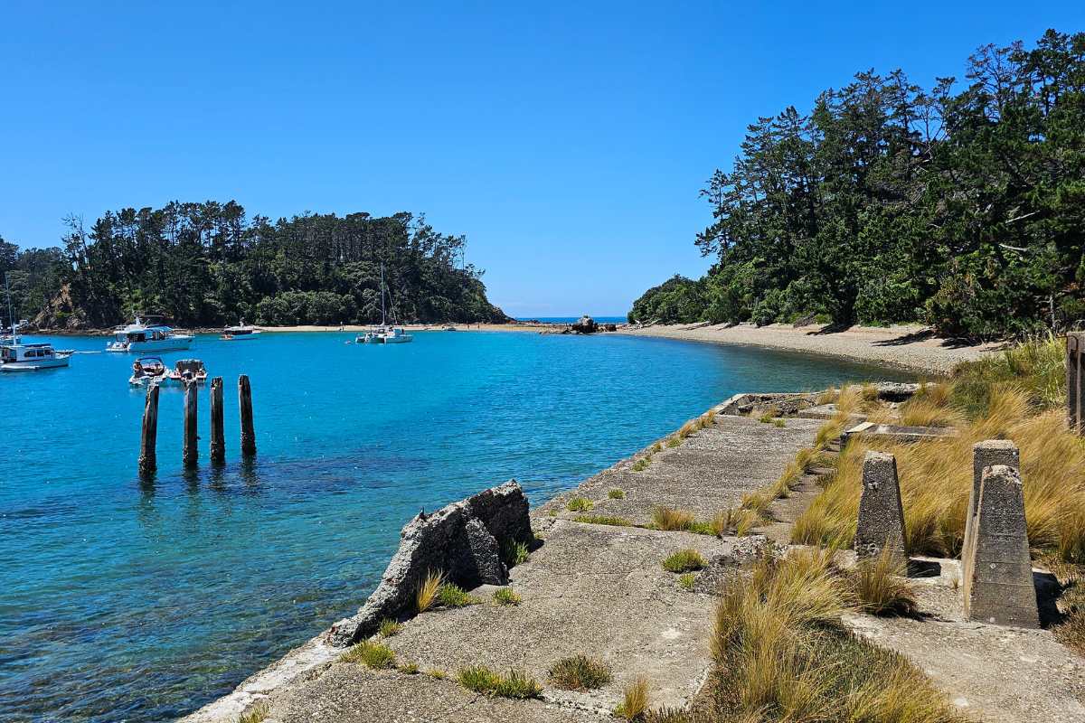 There is no road access to this walk. If you go to Kawau Island on the ferry you’ll have to hitch a ride somehow with a boat going from Mansion House. Better to kayak (it’ll take you around 30 mins on a calm day) or take the jetski from Martins Bay on the mainland at Mahurangi East.