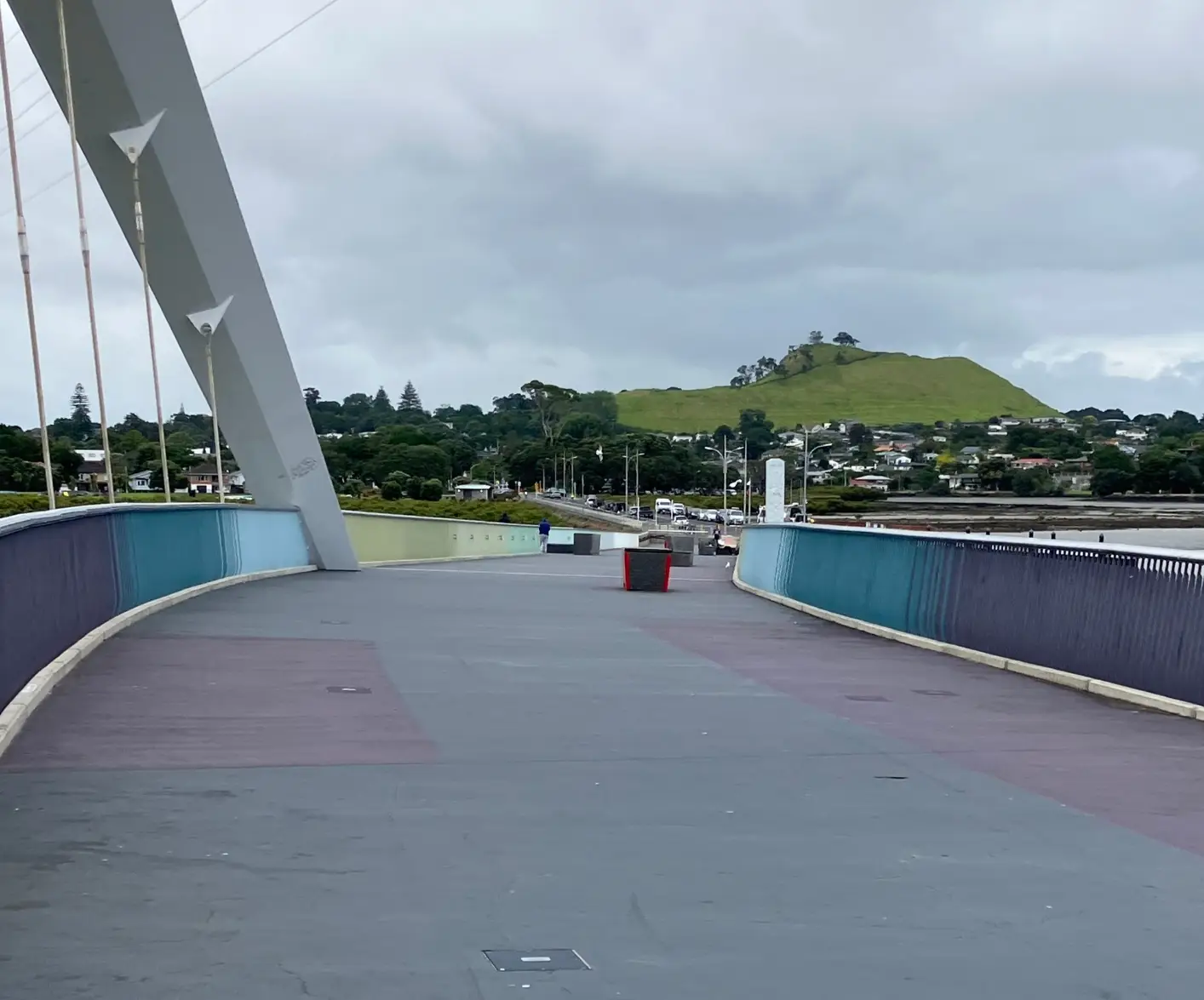 The highlight for many is the short detour onto the new Onehunga Bridge – a graceful arch that curves over the harbour. Walk towards Mangere Mountain on the way out, then turn back towards One Tree Hill. The views from up here show you the full sweep of the Manukau Harbour and the transformation this area has undergone.