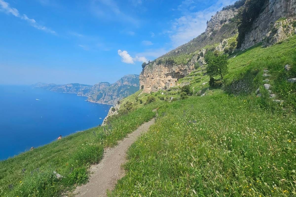 The well-maintained trail offers panoramic views of the Mediterranean Sea and the colourful towns of Positano and Praiano below. Youāll walk past citrus groves, fragrant rosemary bushes, and occasional inclines as you traverse the cliffside path.Ā