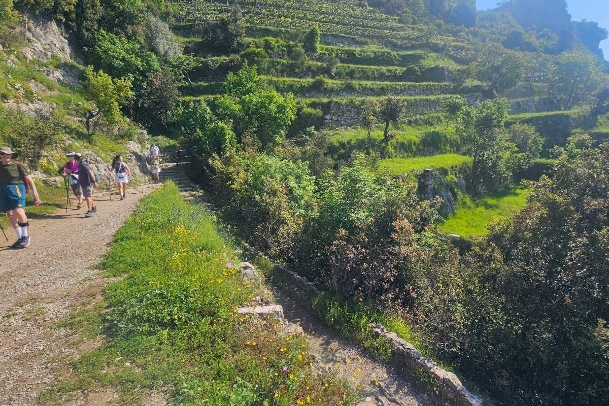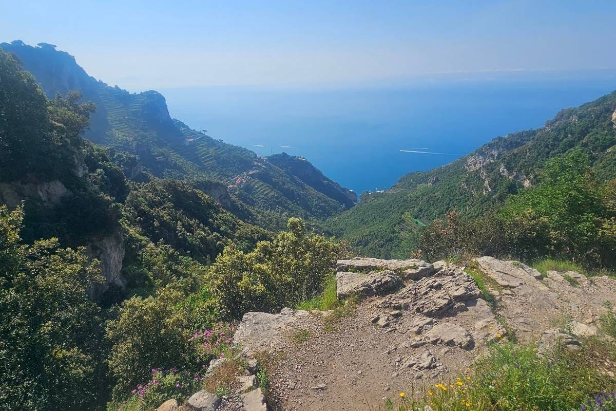 The Path of the Gods (Sentiero degli Dei) walk is moderately challenging and quite long. The hike is along the Amalfi Coast in Italy. I did this walk in May and the weather was perfect, not too hot.