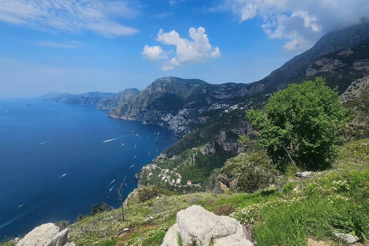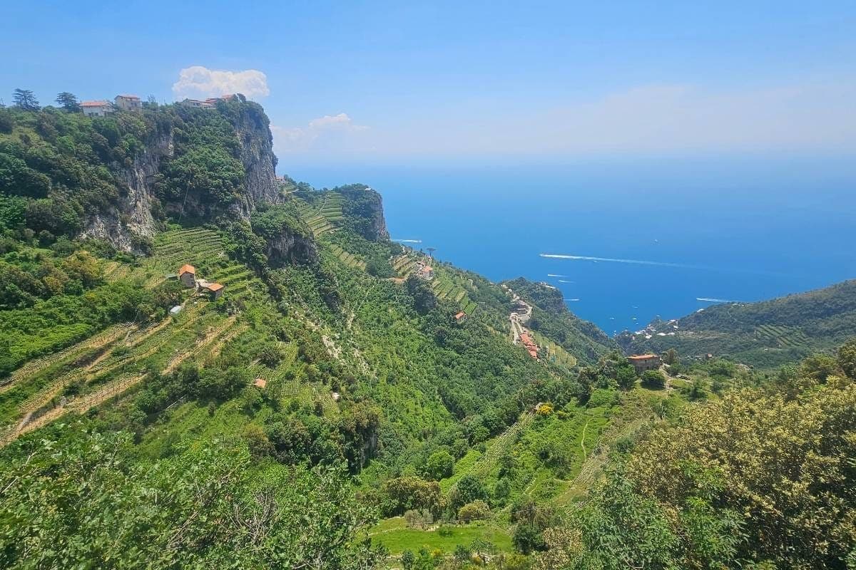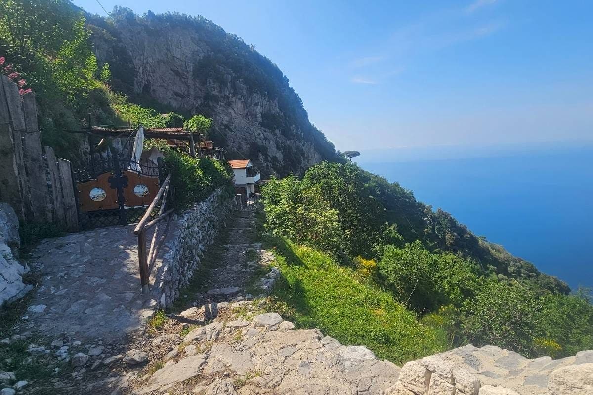 The well-maintained trail offers panoramic views of the Mediterranean Sea and the colourful towns of Positano and Praiano below. You’ll walk past citrus groves, fragrant rosemary bushes, and occasional inclines as you traverse the cliffside path.