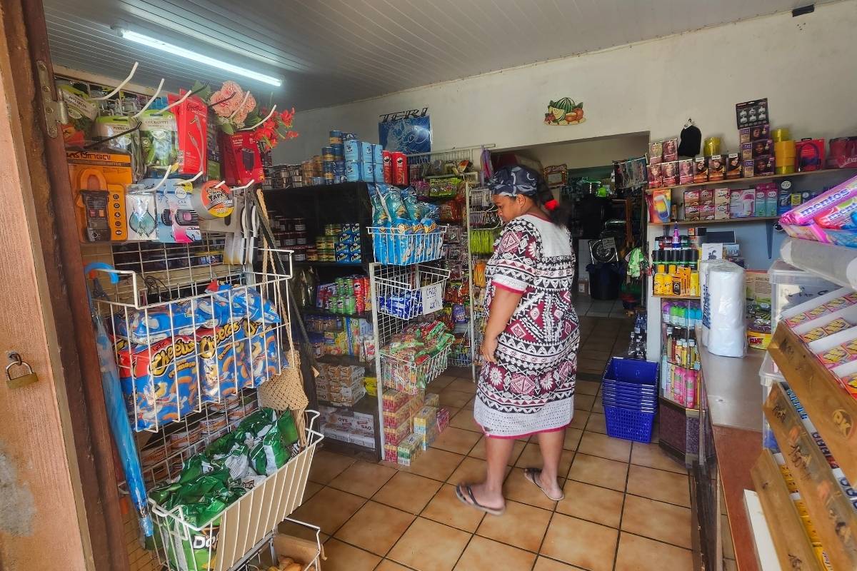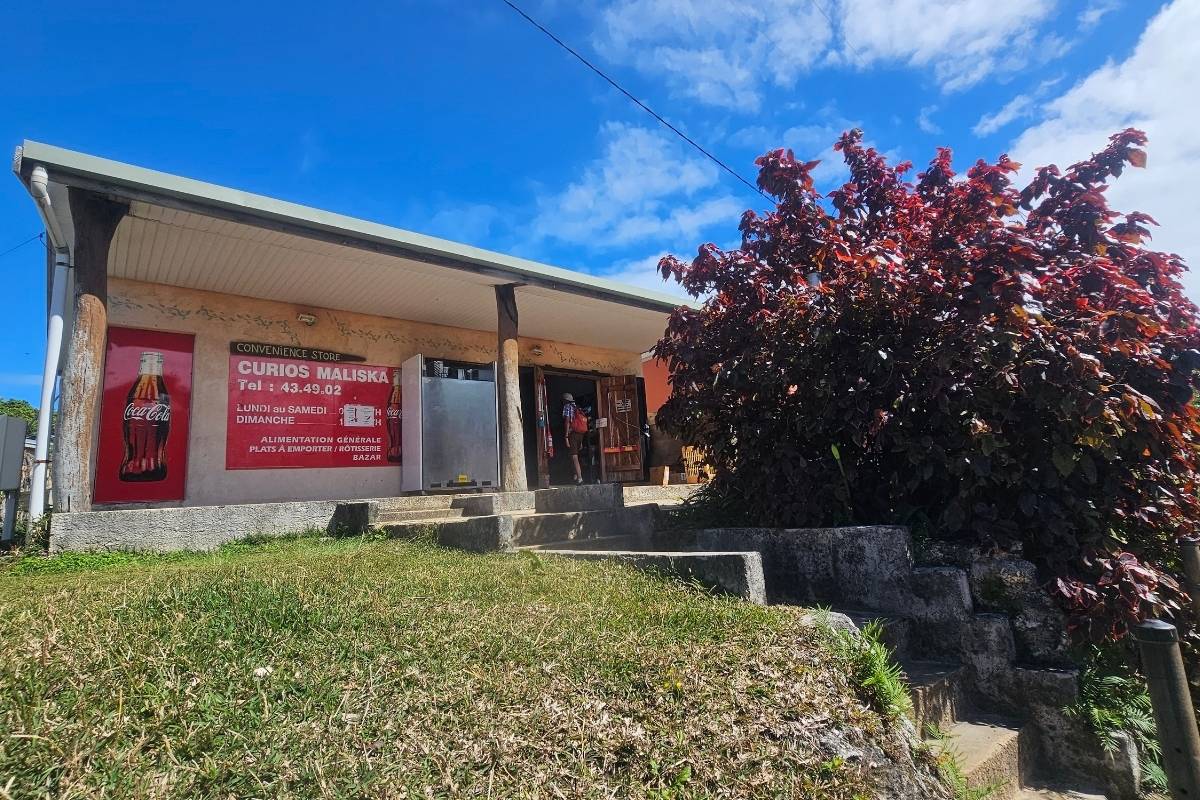 You need to follow the road with the big stunning white sand beach kept on your left-hand side. Then take the first road to your right. This is just before the one and only little shop which you can just see up ahead.
