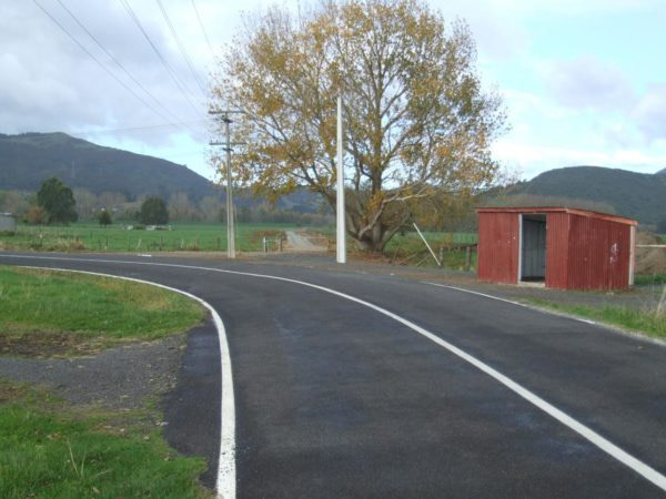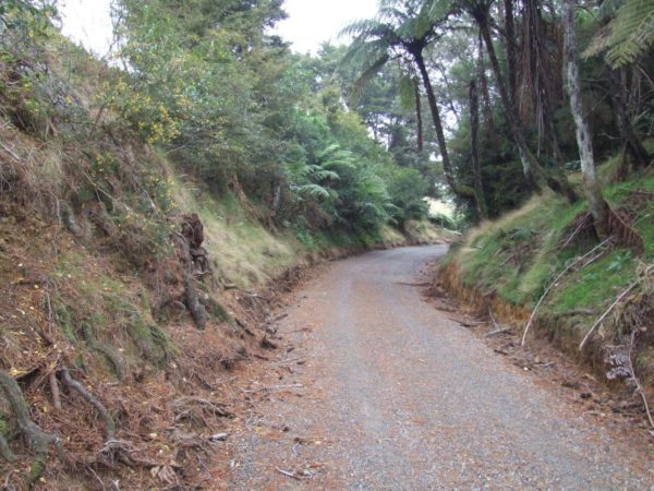 There was not a sign in sight at this turnoff but just follow the gravel Hauraki Rail Trail.