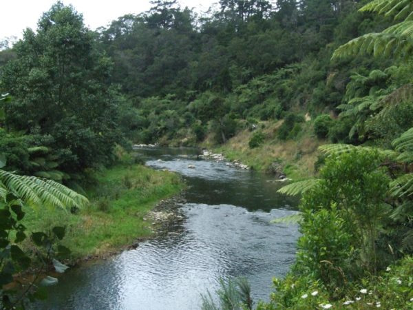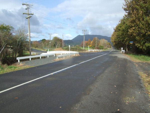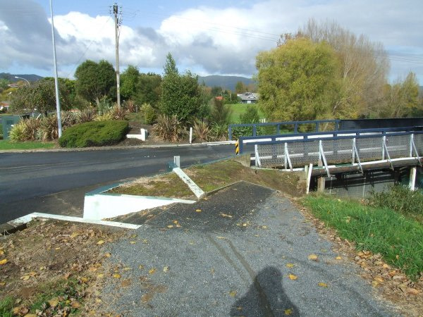 10Mt from the end of the bridge, on your right is the Hauraki Rail Trail to Te Aroha.