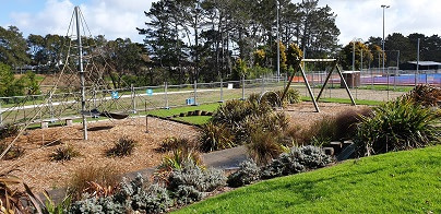 The walkway has wide paths and boardwalks that at times follow alongside the stream through extensive native bush.  The more challenging route runs parallel on the other side of the stream, through bush until it joins the shared path after Barbados Rd.  Beyond the bush, there are lovely grass areas, a variety of playgrounds, many sports fields and even a free 9-hole frisbee-golf course en route for your enjoyment.