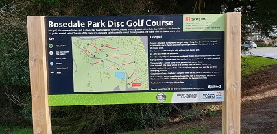 5. Continue past the soccer club and along the road, up the hill and past the pretty duckponds. The frisbee golf-course is on your right. At the top of the hill turn right and walk down the footpath back towards the main track.