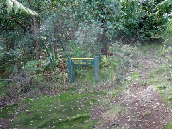 - Cross the creek and look left/upāyouāll see the Homunga Bay track sign heading back into the bush.