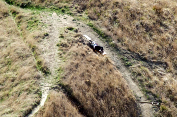 On the way out, walk back to the saddle, then turn right and walk back the way you came, or take the track straight ahead and walk along the farmland. On this track, you will see the track you crawled up to reach the top of Castle Rock.